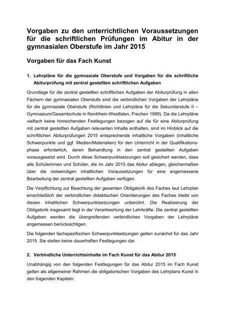 Vorgaben Abitur 2015 Kunst Standardsicherung Nrw