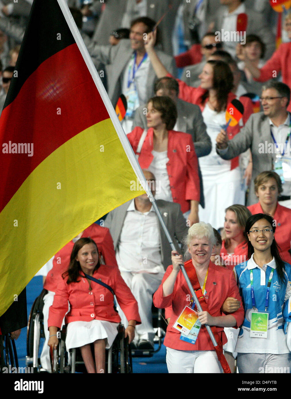 German Goalballer Conny Dietz Is The Flagbearer For The German Team At The Opening Ceremony Of The 2008 Paralympic Games In The National Stadium In Beijing China 06 September 2008 171 German