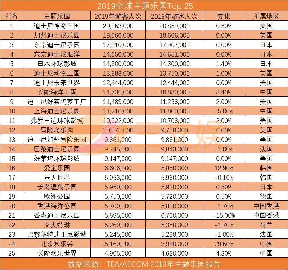迪士尼乐园2019年游客人数出现下滑主题乐园产业未来的增长点在中国 全球主题乐园企业Top10方特年游客超5000万华侨城排名超越环球影城.
